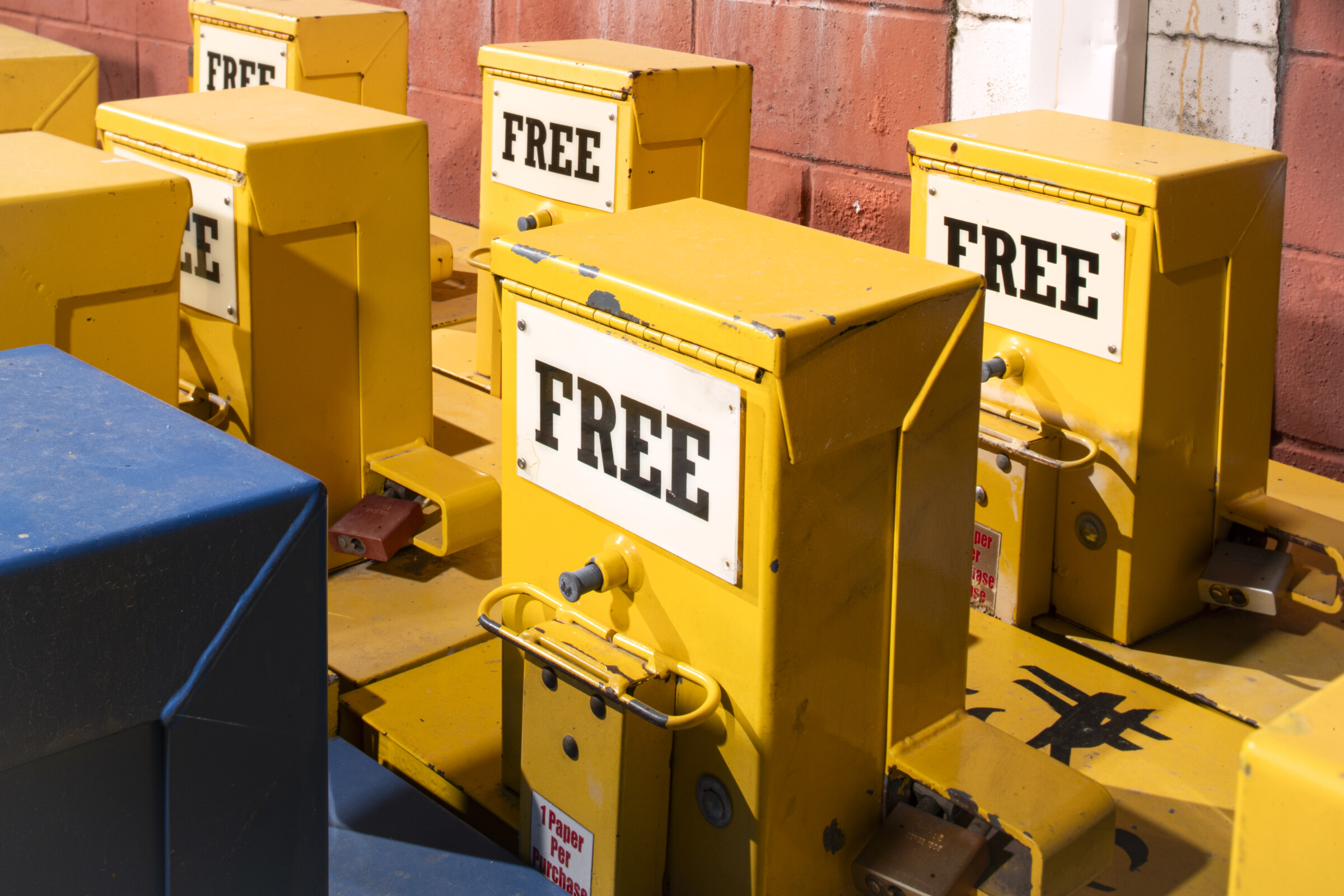 Featured image: Broken newspaper bins sit in the parking lot of The Auburn Journal on July 10, 2023 in Auburn, California.