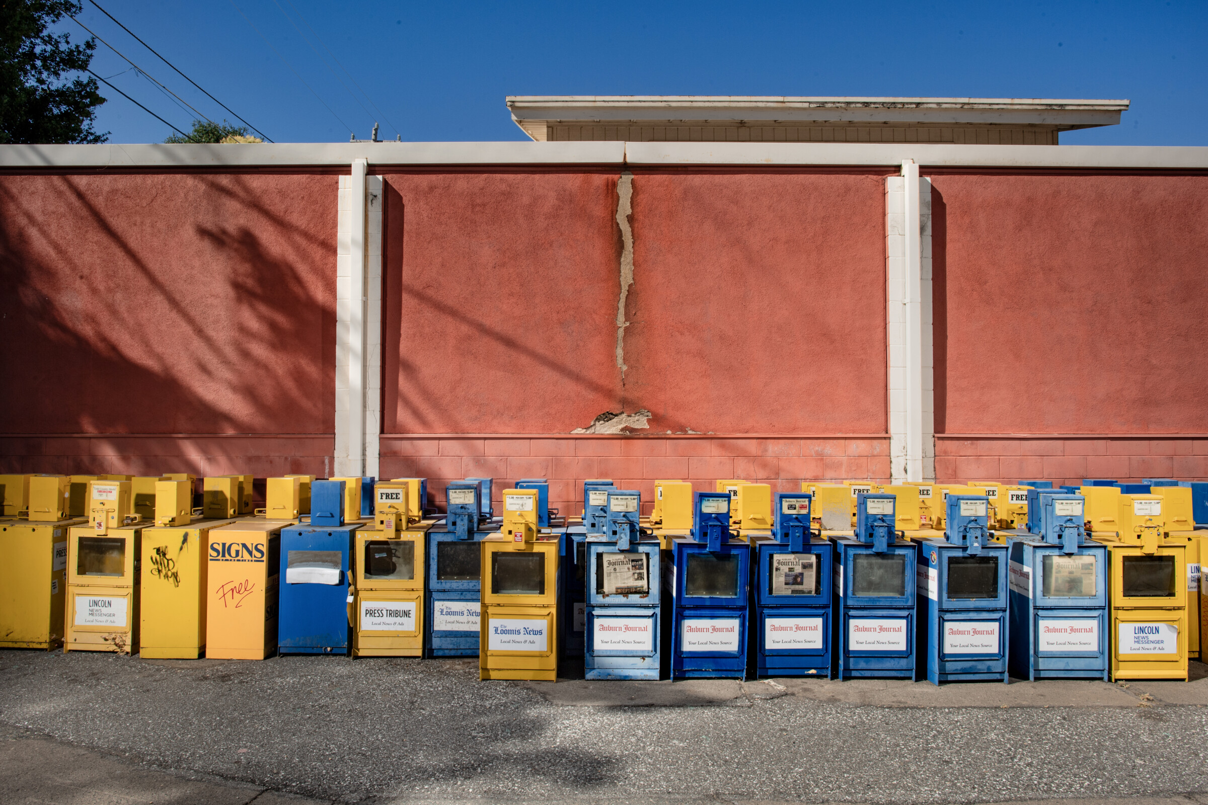 Featured image: Broken newspaper bins sit in the parking lot of The Auburn Journal on July 10, 2023 in Auburn, California.