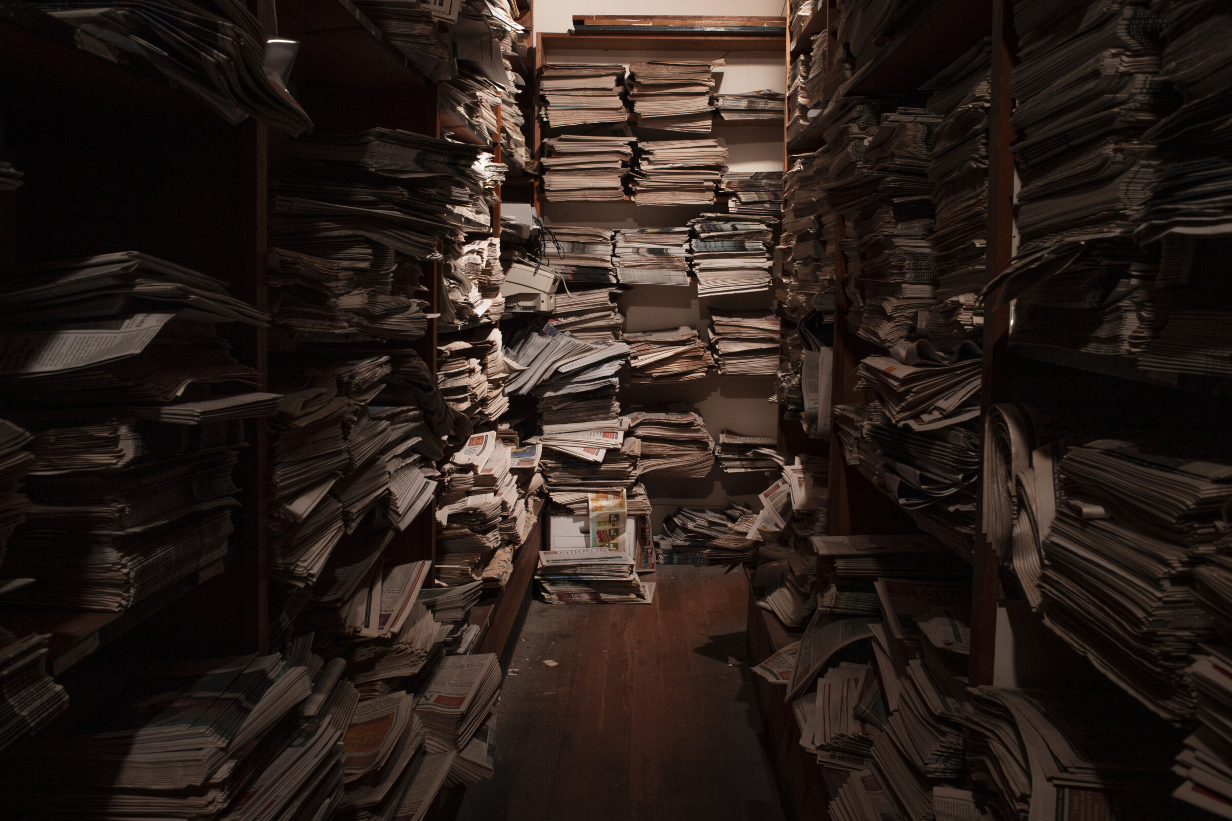 “I look at these dilapidated rooms with collections of papers slowly disintegrating and think: ‘this is an entire town’s history that exists only here’. I find that fascinating, and it’s something I want to capture, because I don’t think newspaper morgues will exist within my lifetime. It’s part of the story.”