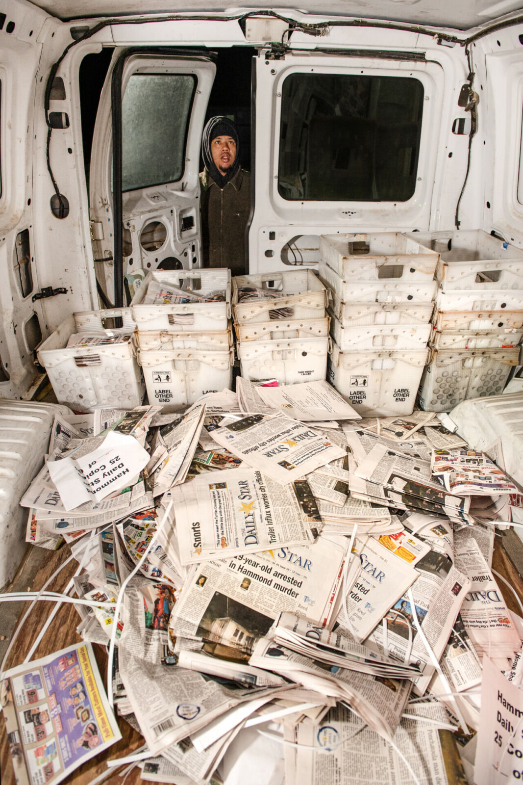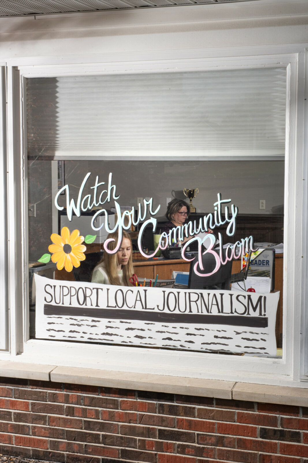 A photographer with more than fifteen years of experience in local and national media, she knew what to look for. “You notice some of the same things in every local newsroom, and they’re often pretty funny,” she said. “A printout of the First Amendment, a stapler labeled for the photo desk, police scanners, and history books of the town. There are just certain commonalities, especially in newsrooms that have been around for a long time.”