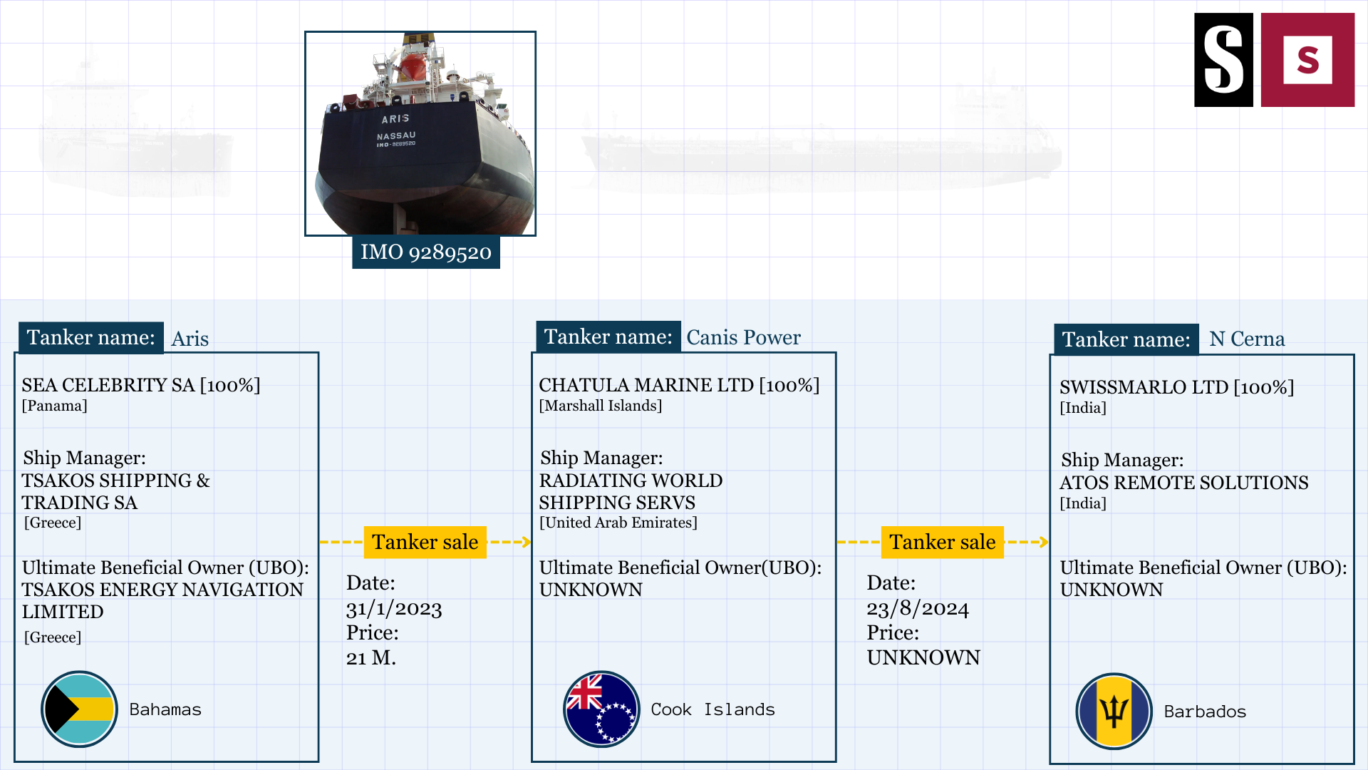Their verification work relied on shipping registries and databases such as IHS and Equasis. In some cases, the team identified intermediary companies that did not appear in the original dataset. “We initially thought one vessel had been sold directly to a Russian company,” notes Maragoudaki, “but later we found a broker company acting between the two.”