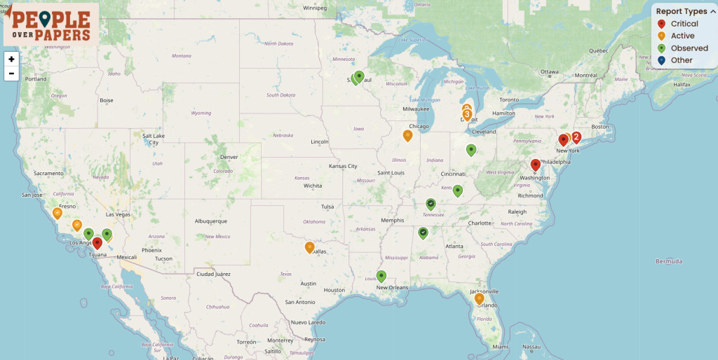 We found ourselves going down a bit of a rabbit hole with this one. ICEout, by People Over Papers, turns community-submitted information into a moderated, real-time map of possible ICE activity. Reports are reviewed before going live and tagged as confirmed (via trusted partners) or non-confirmed (from the public). It’s a strong example of how community reporting can be structured without losing urgency.