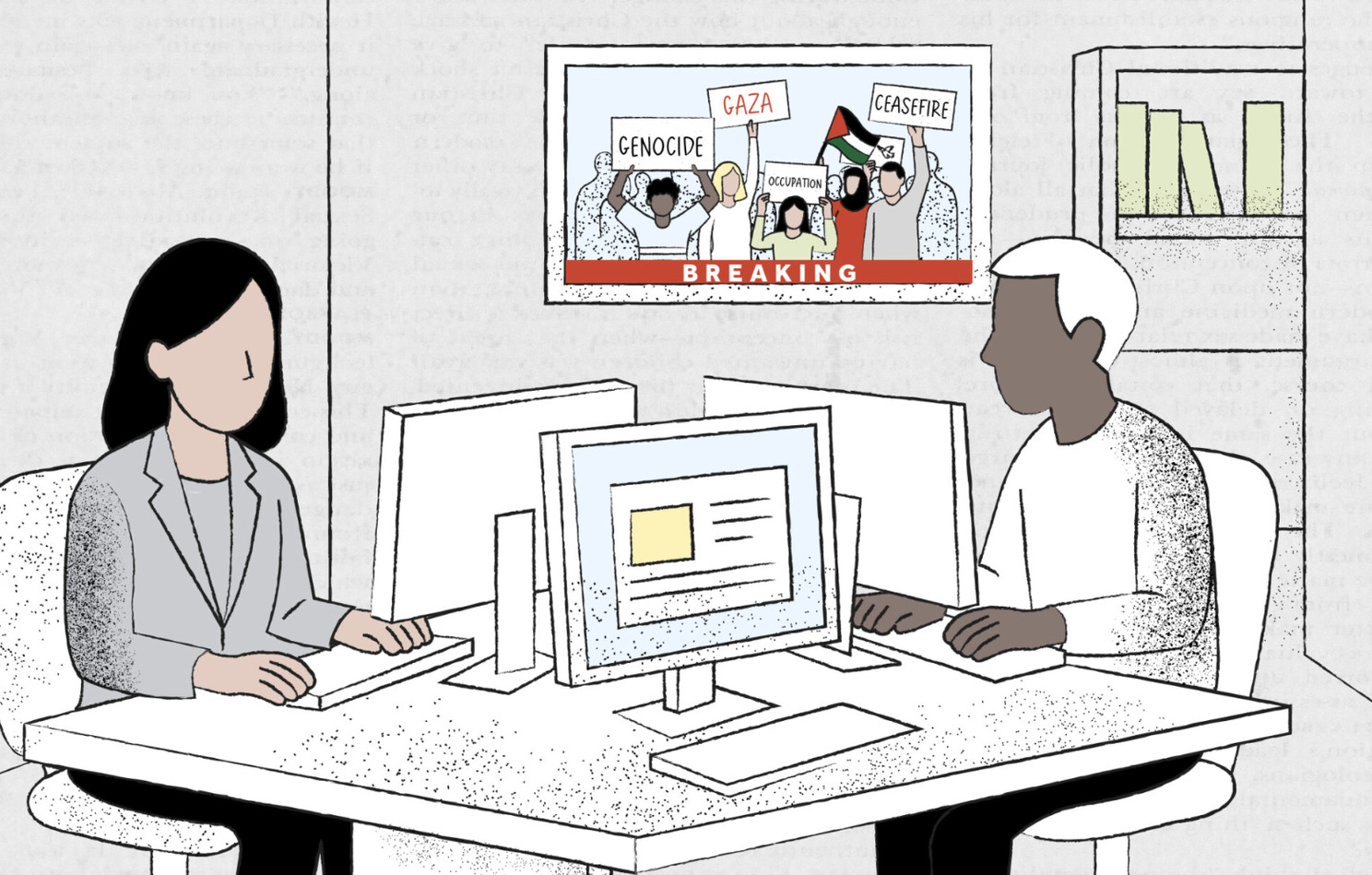 Μία έρευνα από το Prism σε συνεργασία με το Visualizing Palestine αναδεικνύει πώς η προκατάλυψη υπέρ του Ισραήλ έχει ενταθεί στις αμερικανικές αίθουσες σύνταξης μετά τις 7 Οκτωβρίου 2023. Παλαιστίνιοι, Άραβες και Μουσουλμάνοι δημοσιογράφοι περιγράφουν πως μένουν στο περιθώριο, ενώ στην κάλυψη πρωτοστατούσαν ρεπόρτερ που συνδέονταν με το Ισραήλ και τις υπέρ αυτού ομάδες λόμπι. Με την επιμέλεια των Σαχαρ Φατιμά (Sahar Fatima) Κάρολυν Κοπλαντ (Carolyn Copeland) και Ρασμί Κουμάρ (Rashmee Kumar), το κομμάτι ερευνά πως αυτές οι δυναμικες έχουν διαμορφώσει το ρεπορτάζ της γενοκτονίας που τελεί το Ισραήλ στη Γάζα. 👉 Κατεβάστε το visual